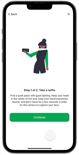I updated the biometrics collection screen and had the app capture a user’s face automatically when it’s positioned in the center of the frame, confirm it with a green check mark, and proceed to the next screen without having the user take any action.