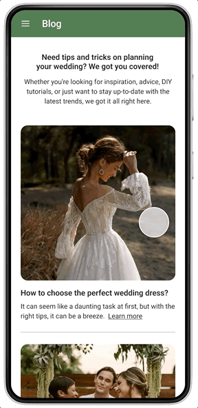 I created a Blog page where users can browse through dozens of posts written by industry experts to draw inspiration from and get helpful tips and tricks on making their wedding day immaculate.